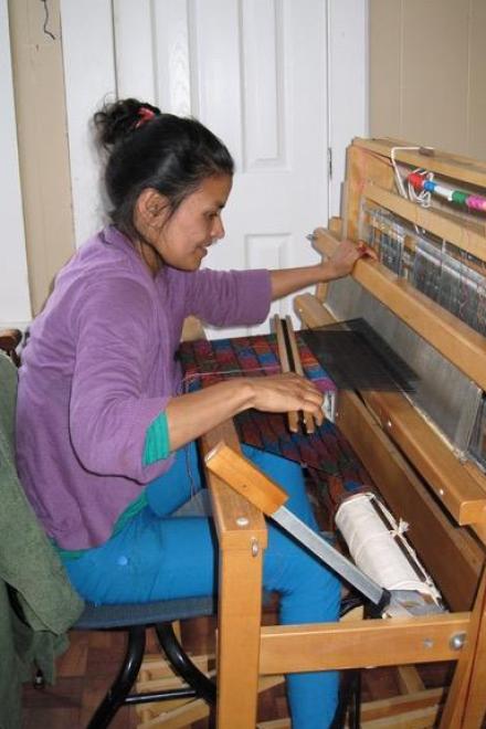 Hema Bhuljal is an excellent weaver who draws on long experience at the frame loom from when she worked in the refugee camp craft workshop for years in Nepal. Like all of the Nepali-speaking Bhutanese weavers now resettling in Worcester, Hema and her family were targeted by the nationalistic, xenophobic Bhutanese federal government as “outsiders” (though they were hardly that, having lived and farmed in Bhutan for over a century). Hema and her kin fled Bhutan for safety to U.N.-sponsored refugee camps over the border in Nepal. There, they waited for decades for official permission to immigrant to third countries as U.N.-sponsored refugees.