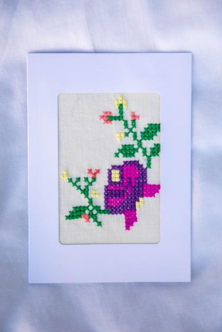 Many women in Afghanistan are expert embroiderers, making decorated pillows, curtains, food covers, and furniture coverings for their homes as a key part of being an accomplished woman. Khatima has adapted this skill to making small embroidered squares that RAW places into cotton frames to make greeting cards. Khatima and her female kin also craft elaborate embroidered insets for festive clothing for their families.