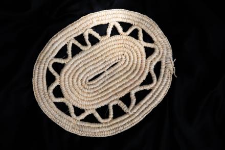 Sitting on the floor in her triple decker apartment, Hungma twists dried corn husk strips into coils, to fashion small rounded pira mats. She also makes small rounded baskets of corn husks, using a similar weaving technique. Pira can also be made of torn strips of fiber, fashioned with wool or torn strips of a sari. Bamboo is used to force the threads through, to make the binding. Various objects can be set upon the small pira or they can be hung on the wall, as decorations. In Bhutanese settings, however, much larger pira are used as mats to sit upon on the house floor. Especially finely-wrought pira welcome honored guests; newborn babies are also placed upon such larger pira, to welcome them into human company and into the family. Pira come in many variations in Worcester’s Bhutanese community.